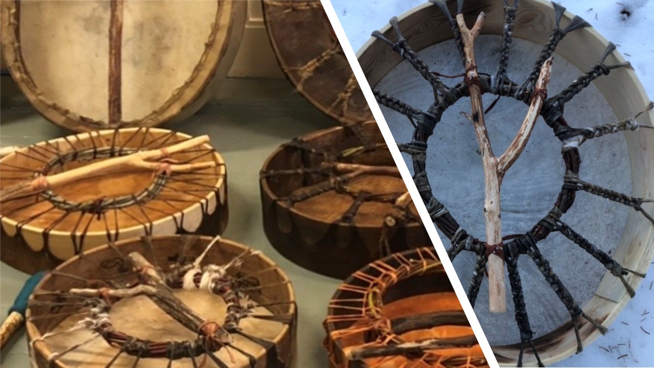 Valmistamme jokaiselle persoonallisen voima- tai rukousrummun. Kehät ovat mänty- tai haapalaudasta ja nahkavaihtoehtoina ovat käsin työstetty peuran- ja hirvennahka tai teollisesti muokattu poro. Nahkoja löytyy puun kuorilla valmiiksi värjättyinä. Valittavana on useita sidontatekniikoita ja kehiä käsittelemme esimerkiksi tervaamalla. Rumpuja työstäessämme käymme läpi niiden käyttöön ja huoltoon liittyviä seikkoja, rumpumatkojen maailmankuvaa tai rummun käyttöä hoitamisessa.